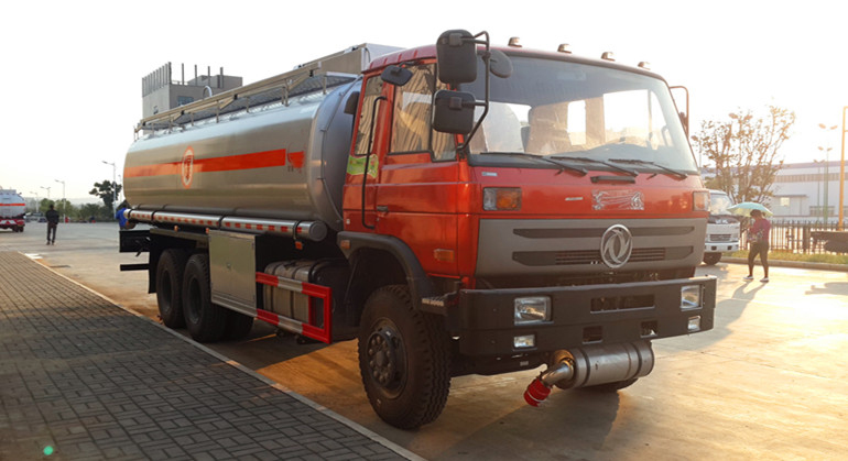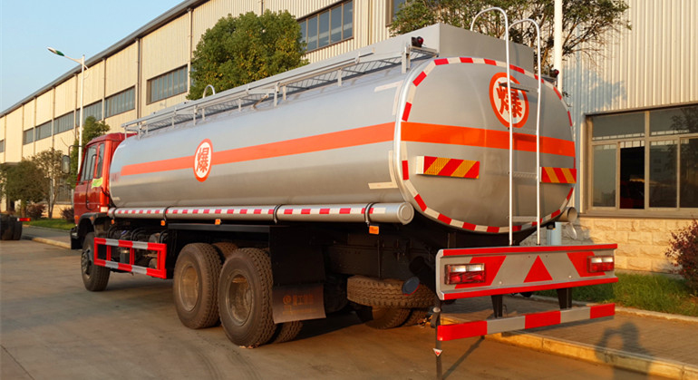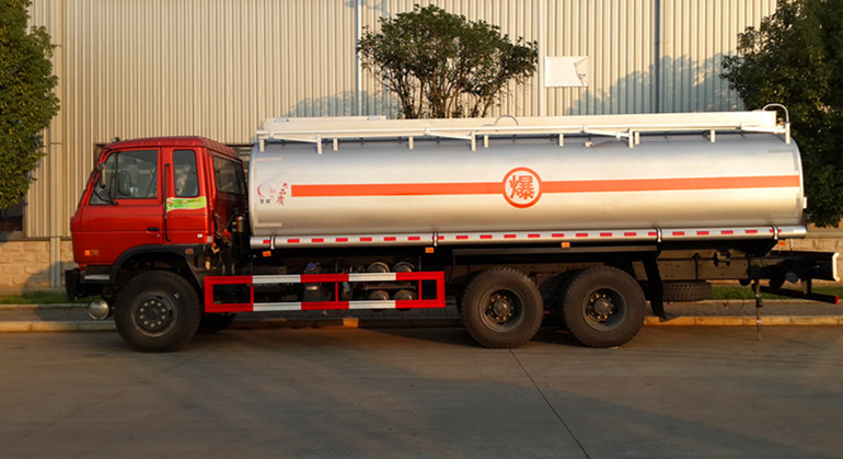 该车适用于危险品运输,运输介质:汽油,介质密度为0.7吨/立方米,类项号:3;罐体有效容积:19.95立方米,整车长/轴距/后悬对应关系为(mm):10165/4750+1300/2600,10165/4350+1300/3000;罐体外形尺寸(长×长轴×短轴)(mm)为:7100×2400×1650。防护材料:Q235A碳钢,连接方式:左右侧面及后部防护均采用焊接连接,后部防护断面尺(mm):110×50, 后部防护离地高度(mm):520。仅采用底盘子午线轮胎和带ABS的底盘,该车前轮安装盘式制动器,前置排气管,装配限速装置,限速80km/h。安装带有卫星定位功能的行驶记录仪。ABS生产厂
